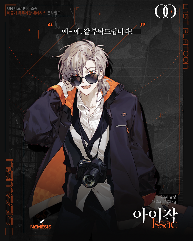아이작, 바다-네오메니아에는 없겠지만-에 던져버리면 입부터 뜰 간사한 녀석 되시겠다. 남이 한마디 할 때 세 마디를 내뱉는 그의 말투는 경박하기 짝이 없었고, 가벼운 몸짓에 누구에게나 스스럼없이 다가가는 개방적인 면까지. 그는 입담으로 사람들의 호감을 샀지만, 언젠가 그 입 때문에 파멸을 맞을 사람 no.1에 가깝다. 흥미로운 소식을 모으기에 바빴고, 그걸 남에게 퍼트리는 재주 또한 좋았다. 아이작의 주변에는 늘 흥미로운 이야기가 가득하다. 어제도, 오늘도, 그리고 내일까지도….